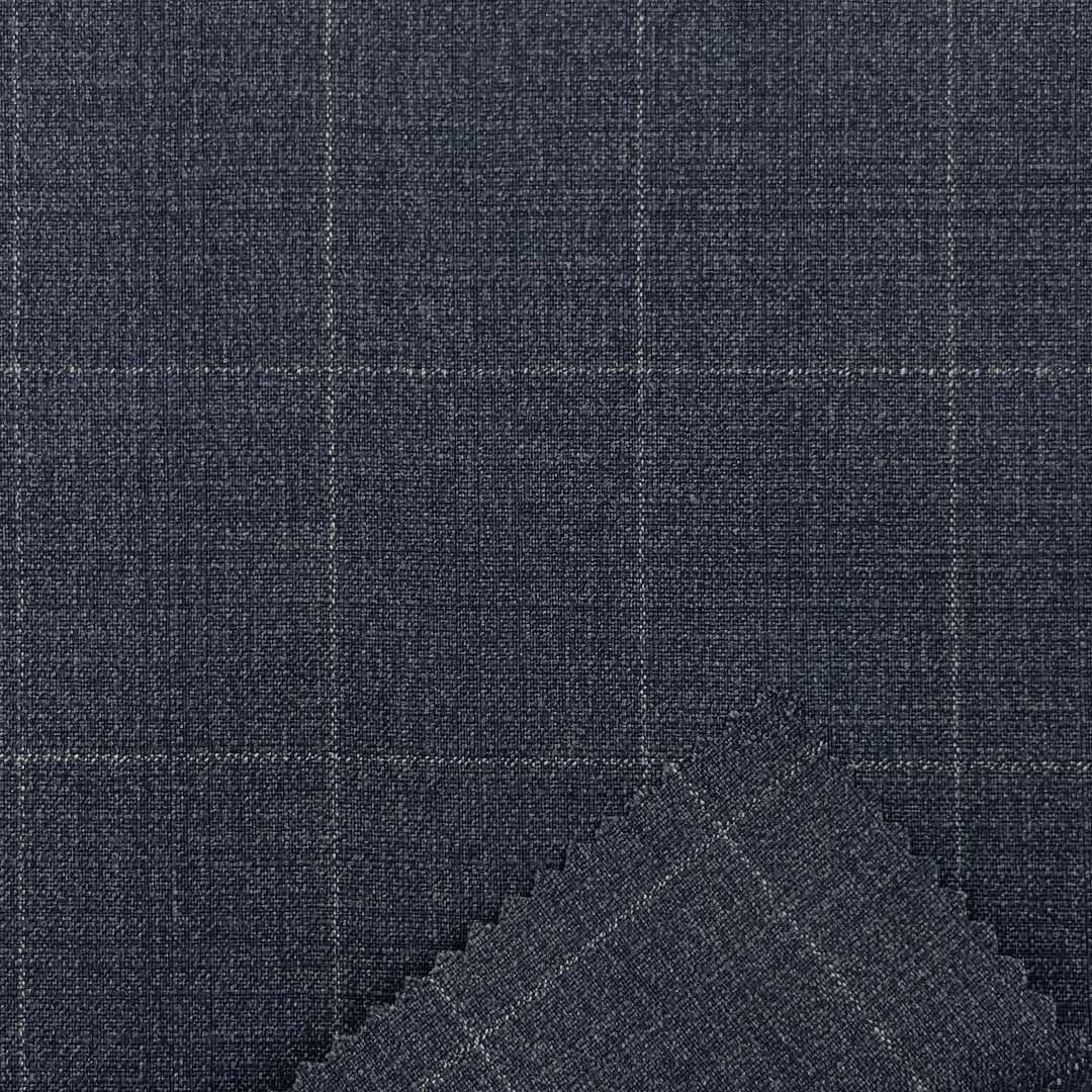 Weighing 340g/m (6.7oz), this substantial fabric combines 68% polyester, 30% viscose, and 2% spandex to create a structured suiting material with crisp hand feel and refined texture. The specialized composition delivers professional elegance through its defined crispness while adding visual depth through its distinctive texture.