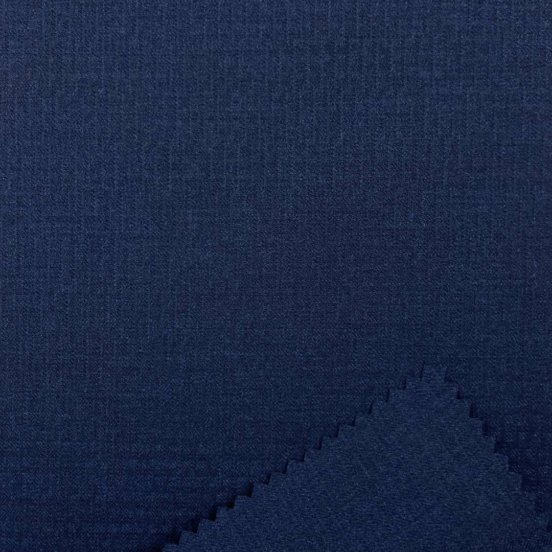 The substantial polyester content ensures robust durability, resilience, and reliable shape retention, forming a solid foundation for garments that must maintain a clean and structured silhouette, while the high proportion of viscose is instrumental in achieving the fabric’s signature smoothness and enhanced breathability, significantly elevating comfort and contributing a subtle richness to the hand. The precise 2% spandex inclusion offers optimal mechanical elasticity and recovery, facilitating natural movement and supporting a smooth, graceful drape that harmonizes with the textured character of this medium-weight suit fabric, which provides excellent body and a polished, professional presence, making it an outstanding choice for business blazers and tailored suits where a smooth touch and defined texture are essential in formal or corporate environments.