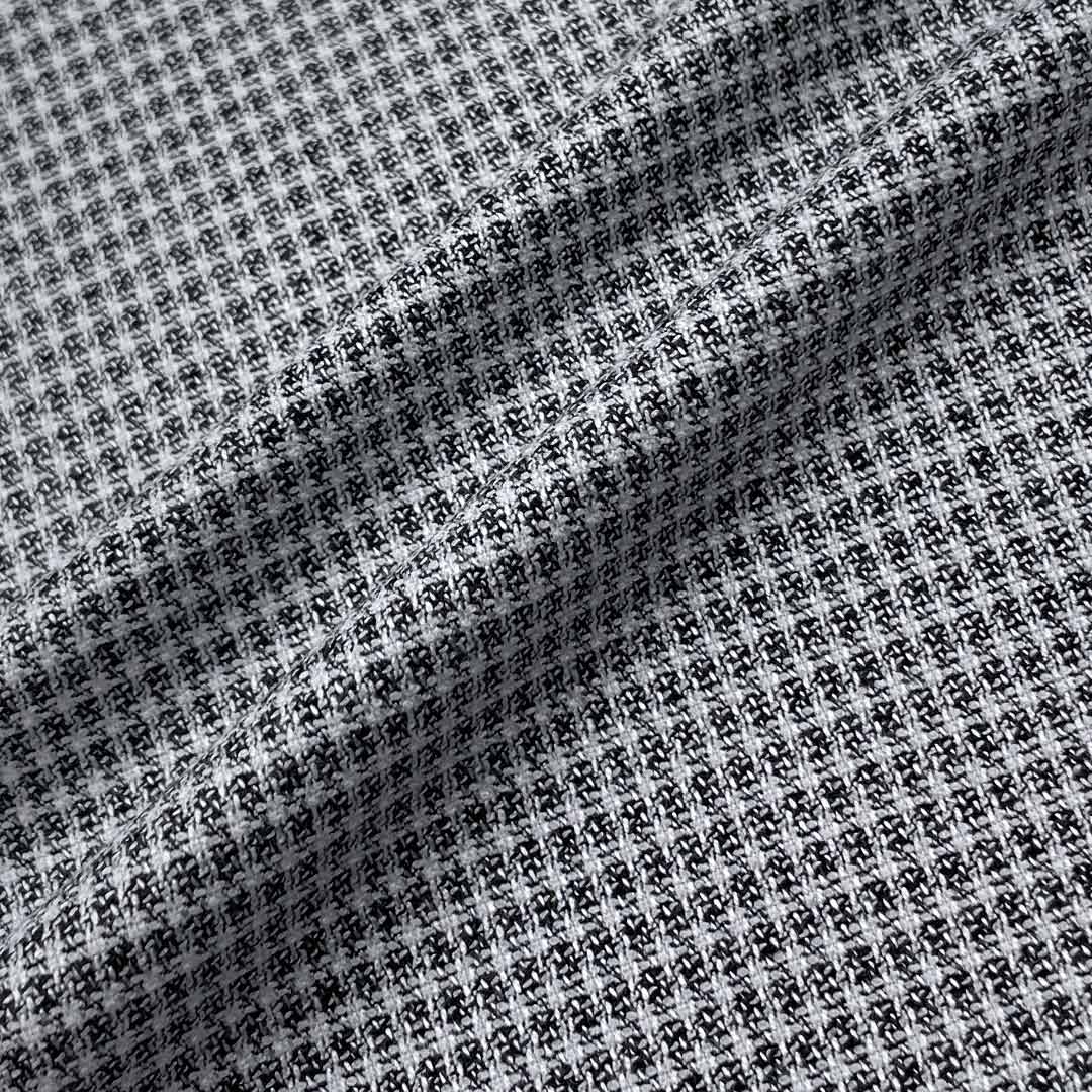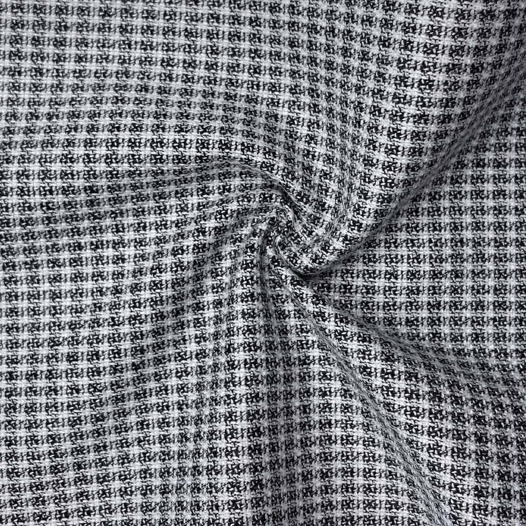 The high-performance polyester foundation delivers outstanding durability and reliable shape retention, ensuring tailored pieces maintain their sharp silhouette through extended professional wear. The generous viscose content contributes remarkable softness and enhanced breathability, providing superior comfort that perfectly complements the fabric's textural character. With 2% spandex strategically integrated, the fabric offers optimal flexibility and excellent recovery, supporting its structured drape while ensuring comfortable movement. This medium-weight textile demonstrates impressive tailoring capabilities, cutting cleanly and pressing into crisp, well-defined edges that enhance the garment's professional aesthetic.