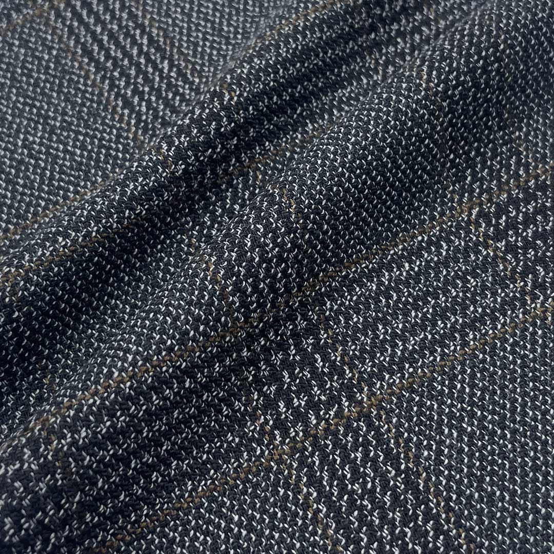 Weighing 420g/m (8.3oz), this authoritative fabric combines 79% polyester, 20% viscose, and 1% spandex to create a premium suiting material with definitive crisp hand feel and distinctive texture. Designed specifically for professional suits and blazers, this sophisticated blend delivers commanding presence through its substantial weight while ensuring structured comfort through its balanced fiber composition. Polyester provides exceptional durability and reliable shape retention, maintaining garments' sharp silhouette through extended professional wear.