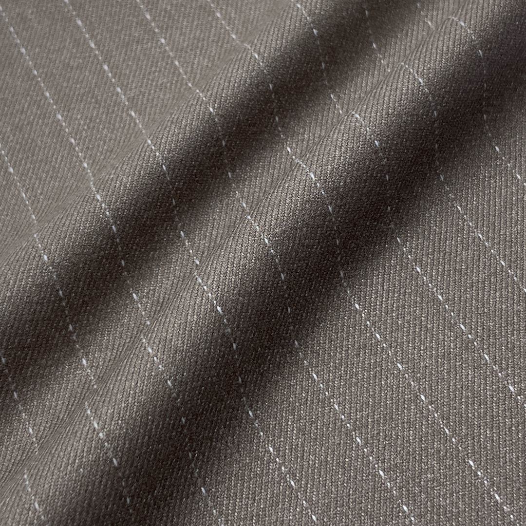 Weighing 500g/m (9.9oz), this substantial fabric combines 71% polyester, 27% viscose, and 2% spandex to create a structured suiting material with crisp hand feel and fine texture. The specialized composition delivers professional elegance through its defined crispness while adding subtle sophistication through its refined surface.