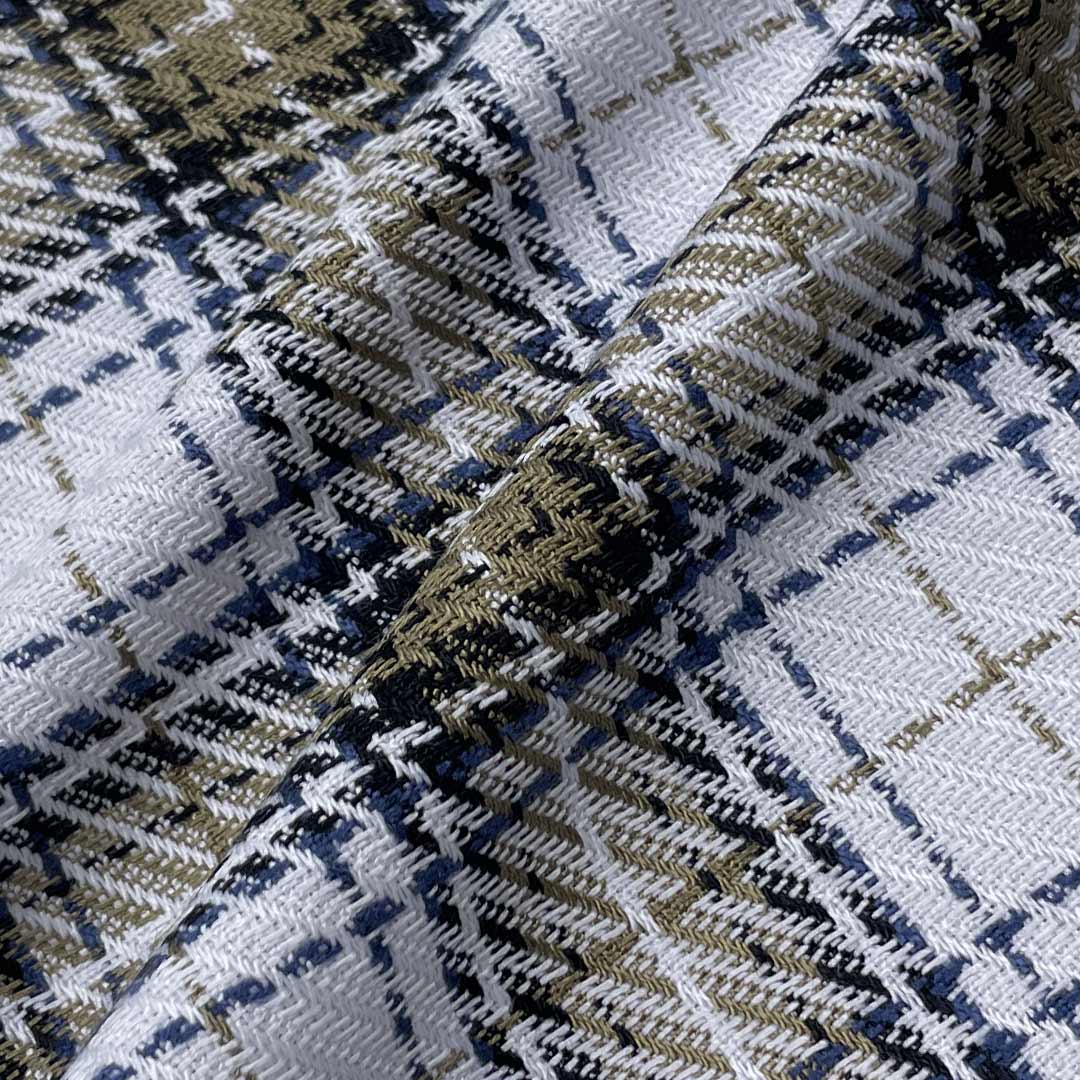 The fabric’s substantial weight provides a durable foundation for tailored garments, ensuring a polished silhouette while maintaining a pleasantly soft tactile experience. Polyester ensures exceptional durability and reliable shape retention, preserving a professional appearance through extended wear. Viscose contributes enhanced softness and breathability, elevating comfort while harmonizing with the fabric’s textured character. The textured finish adds visual depth and a sophisticated tactile dimension, distinguishing it in both corporate and smart-casual settings.